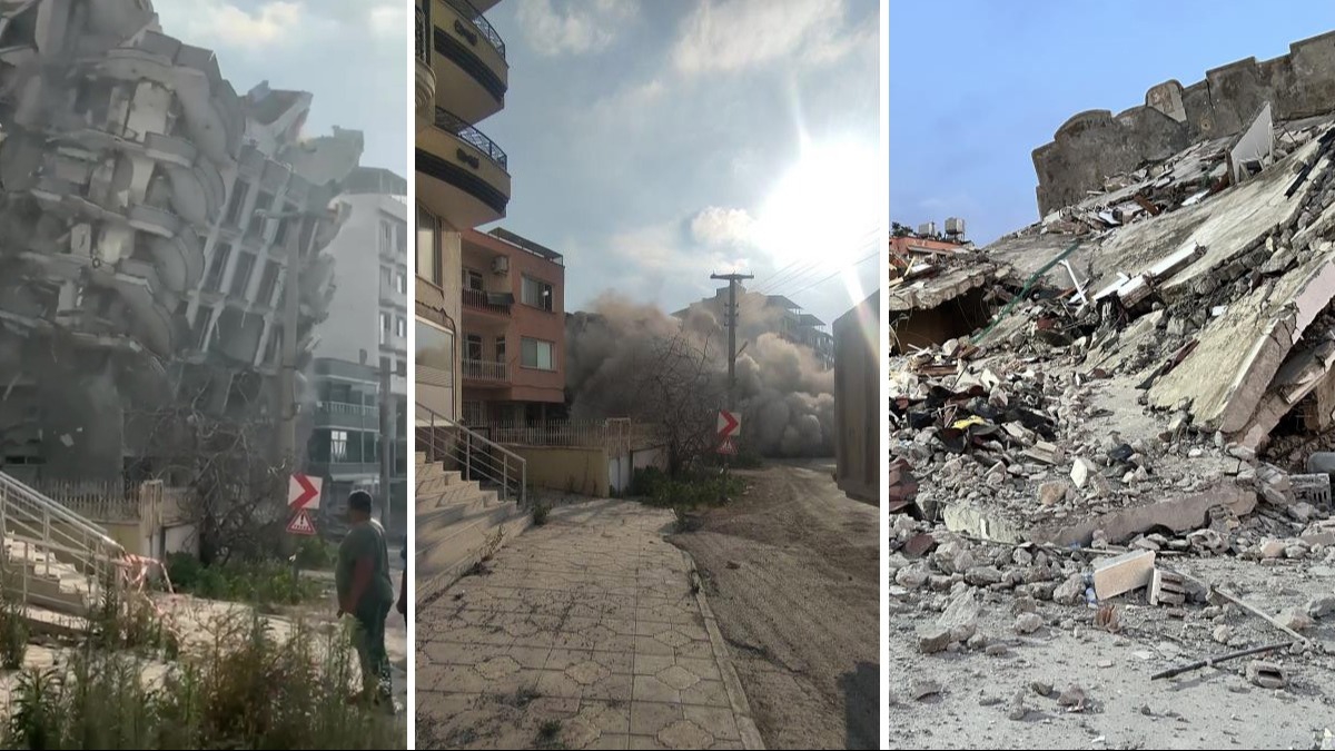 Asrın felaketinde yerle bir olan Hatay'da hasarlı binaların yıkımında sona gelinirken, İskenderun ilçesi Nardüzü Mahallesi'nde de ekipler yıkım çalışmalarını aralıksız sürdürüyor. Mahalledeki 7 katlı bir binaya iş makinasıyla zarar veren operatör, binayı korna sesiyle yıktı. Operatörün profesyonelce gerçekleştirdiği yıkım cep telefonu ile kaydedilirken, deprem etkisi oluşturan yıkımda herhangi bir olumsuz durum yaşanmadı.