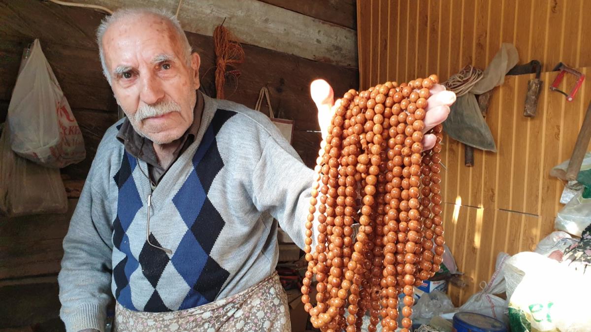Tespih ustası İspir, AA muhabirine, 80 yaşında olmasına rağmen günde 2-3 tespih yapabildiğini söyledi.