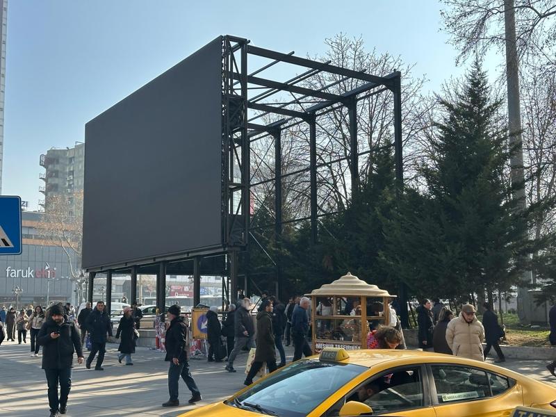 Alınan bilgiye göre ABB, Kızılay'da Güvenpark metro çıkışına dijital pano yerleştirdi.