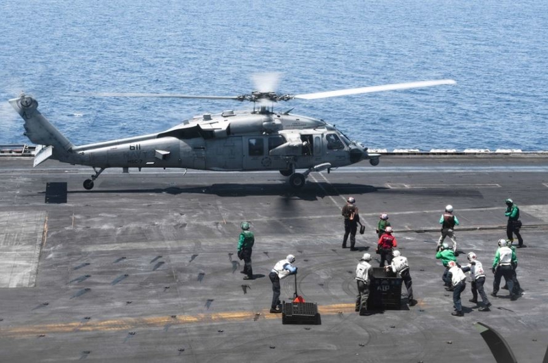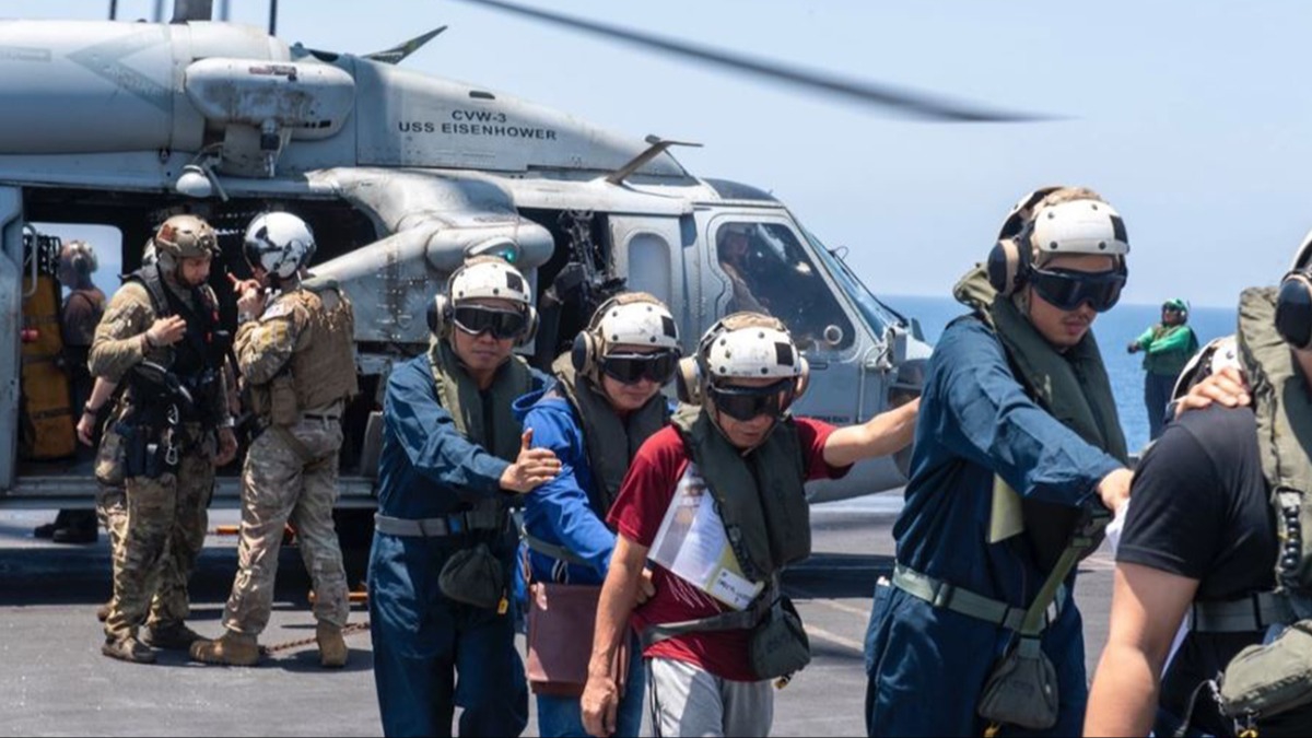 Liberya bandıralı, Yunanistan'a ait dökme yük gemisi M/V Tutor, 12 Haziran'da güney Kızıldeniz'in uluslararası sularında seyrederken İran destekli bir Husi insansız deniz aracı tarafından vuruldu. Saldırı geminin makine dairesinde ciddi su baskınına ve hasara yol açtı. Bir sivil denizci halen kayıptır. Helikopter Deniz Taarruz Filosu (HSM) 74'ten bir helikopter, Tutor'dan 24 sivil denizciyi havayoluyla Ticonderoga sınıfı güdümlü füze kruvazörü USS Philippine Sea'ye taşıdı. Oradan da Helikopter Deniz Savaş Filosu (HSC) 7'nin helikopterleri, grubu USS Dwight D. Eisenhower'a taşıdı. Denizciler uçak gemisinde tıbbi kontrolden geçirildikten sonra daha sonraki bakım için karaya götürüldü" denildi.