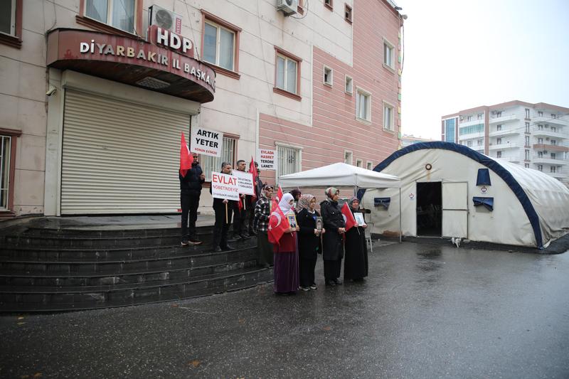 Terör örgütü PKK tarafından kaçırılan çocuklarına kavuşmak isteyen ailelerin, 3 Eylül 2019'da HDP il binası önünde başlattığı oturma eylemi, 1939'uncu gününde devam ediyor.
