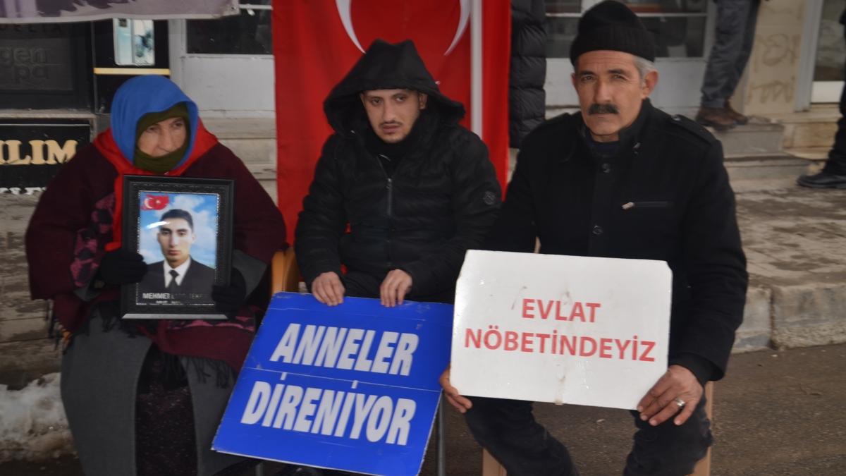 Anne Şahinaz Özcan ise "Yıllardır evlat hasreti çekiyorum. Bu karda, kışta gelip burada nöbet tutuyoruz. Çocuklarımızın teslim olmasını istiyoruz. Yıllardır süren hasretin son bulmasını bekliyoruz." ifadelerini kullandı.