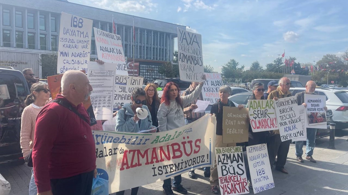 "AZMANBÜSLER DERHAL ADALAR'DAN ÇEKİLMELİ"Ayda Karasulu, taleplerini 10 bini aşan imzacı adına yinelediklerini belirterek, "Adalar'ın doğal ve kültürel dokusuna uymayan 'azmanbüsler' derhal Adalar'dan çekilmeli, ana karaya gönderilmelidir. Dayatmacı yöntem bir kenara bırakılarak Adalar'da katılımcı yöntem izlenmelidir. Adalar'da ulaşım ve ziyaretçi yönetim planları tasarım ve uygulama aşamalarında Adalılarla birlikte yapılmalıdır." diye konuştu.