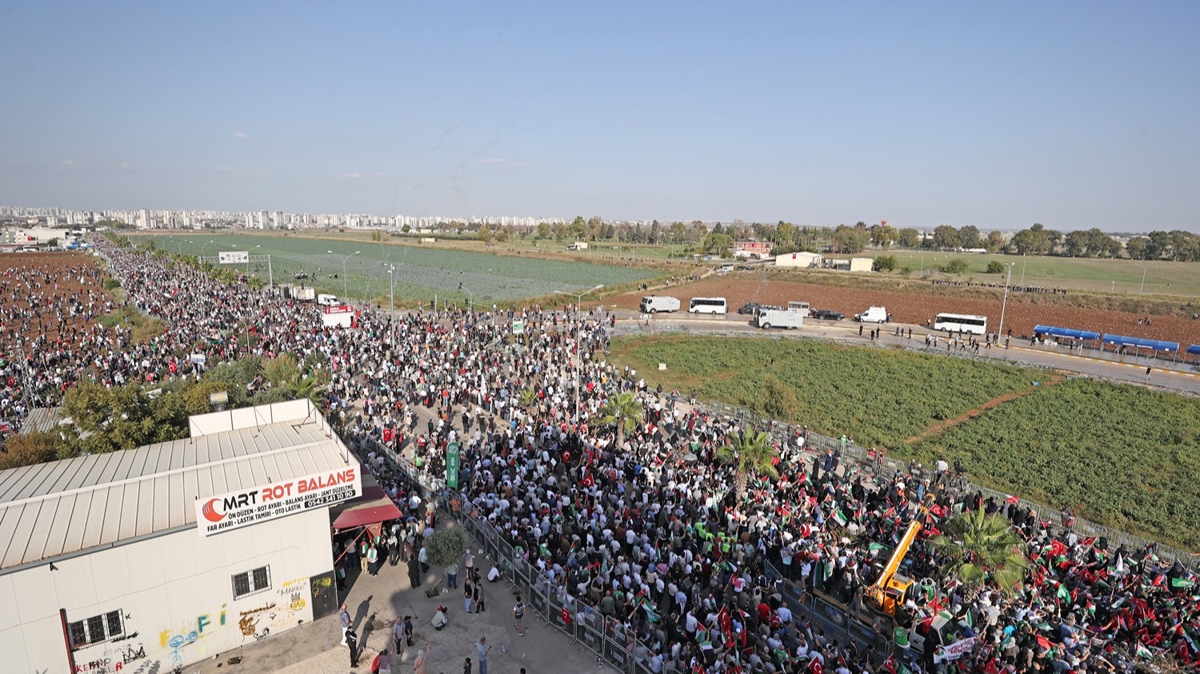 Türkiye'nin farklı illerinden de sivil toplum kuruluşu temsilcileri ve üyeleri ile vatandaşların da destek verdiği konvoyda yer alanlar, ABD Hava Kuvvetleri 39. Hava Üssü Kanat Komutanlığı'nın konuşlu olduğu İncirlik 10. Tanker Üs Komutanlığı önünde bir araya geldi.