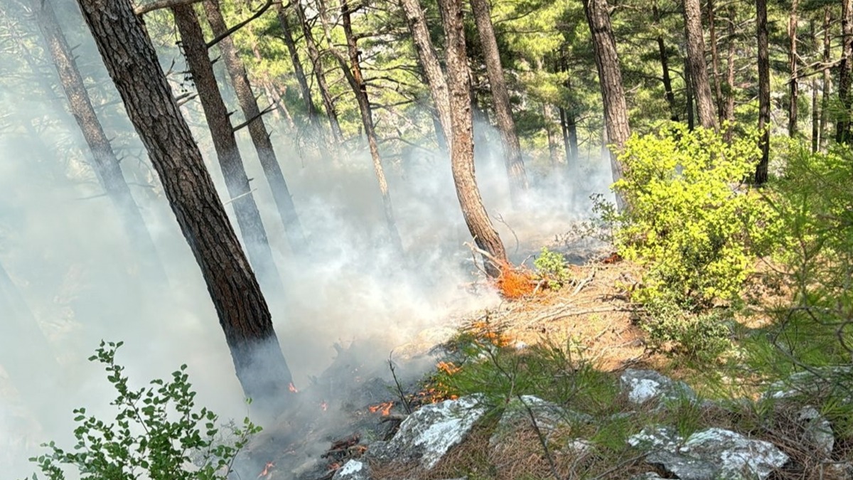 Kazancı Mahallesi'ndeki ormanlık alanda yıldırım düşmesi sonucu yangın çıktı.