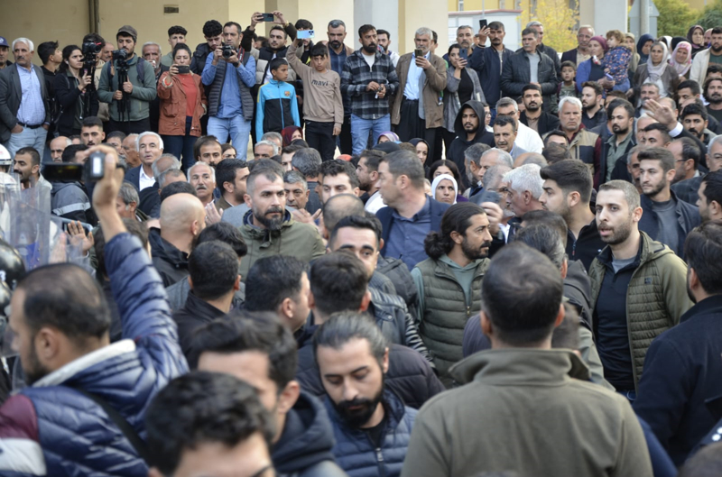 Terör soruşturması kapsamında evinde arama yapılan Mehmet Karayılan, aramaların ardından belediye binası önüne gelerek partililerle birlikte gelişmeleri takip etmeye başladı.