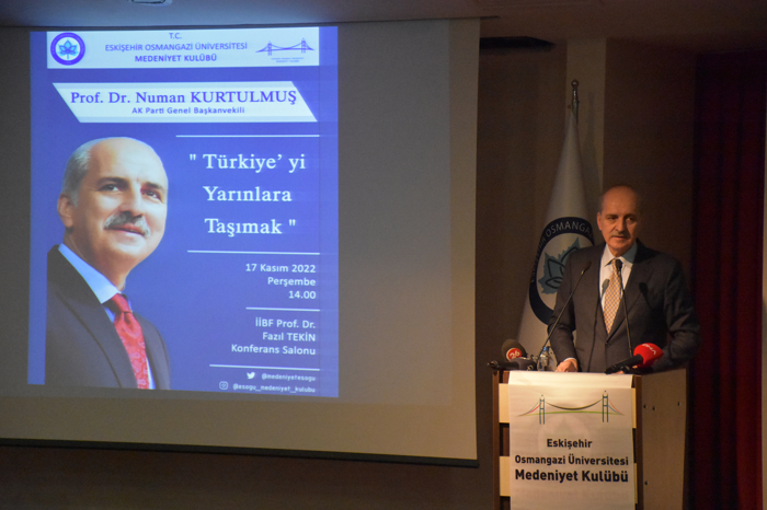 Medeniyet Derneği Eskişehir Temsilciliği ve Eskişehir Osmangazi Üniversitesi (ESOGÜ) Medeniyet Kulübü tarafından ESOGÜ Prof. Dr. Fazıl Tekin Konferans Salonu'nda düzenlenen "Türkiye'yi Yarınlara Taşımak" konferansına katılan Kurtulmuş, burada yaptığı konuşmada, Türkiye'nin coğrafi konumu, dünya üzerindeki etkisi itibariyle yaşanan gelişmeleri çok daha yakından hisseden ülkelerin başında geldiğini söyledi.