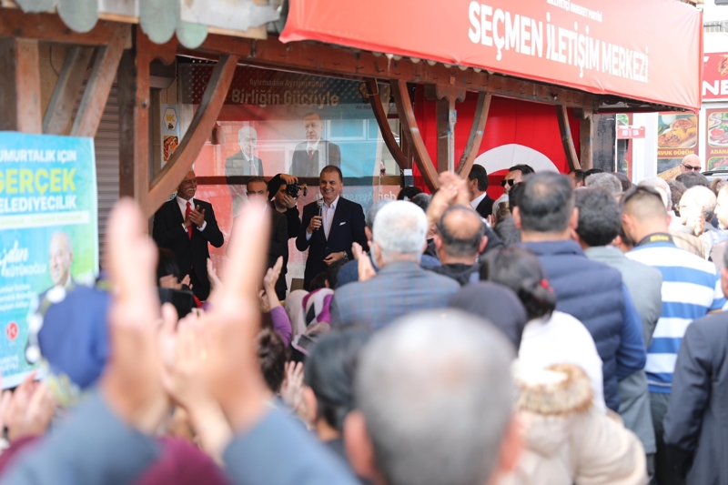 "Adana'nın her tarafında Cumhur İttifakı vizyonuyla, merkezi hükümetle uyumlu, Türkiye Yüzyılı hedeflerine uygun bir tablo çıkarmış olacağız. Bunu dediğimiz zaman muhalefetten birileri 'Belediye sizden olmazsa oraya hizmet götürmeyecek misiniz?' diyor. Biz, 5 yıl boyunca ve bütün görev dönemlerimizde hiç kimseye karşı ayrımcılık yapmadık ama karşımızdakiler belediyecilik konusunda beceriksiz olduğu için ne kaynakları doğru kullanabiliyorlar ne de o ilçeleri, illeri ileri taşıyabilecek bir proje ve vizyon ortaya koyabiliyorlar. Bizim adaylarımızın, Cumhur İttifakı'nın vizyonu temelinde ortaya koyacağı projeler var. Biz de onlara destek vererek bu projelerin hayata geçmesi için elimizden gelen gayreti göstereceğiz."