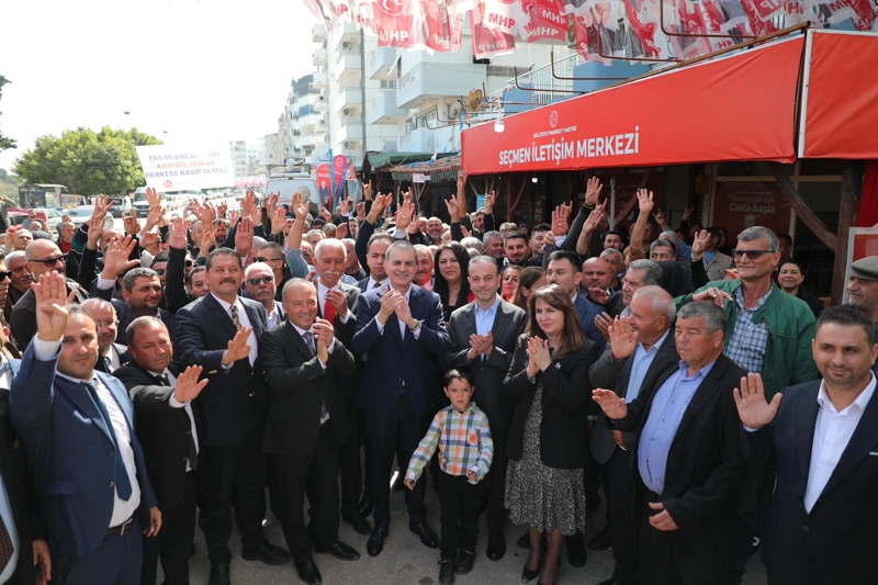 Çelik, daha sonra Adana'nın Yumurtalık ilçesine geçerek Atatürk Caddesi'ndeki MHP Seçmen İletişim Merkezine ziyarette bulundu.
