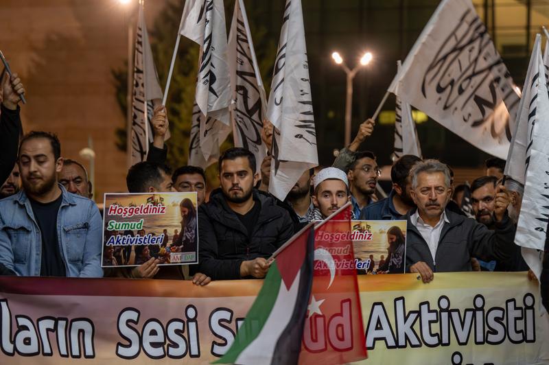Küresel Sumud Filosuna, İtalya, İspanya ve Türk donanmasının gemilerinin 150 mil mesafeye kadar eşlik ettiğinin altını çizen Özkan, "Hatta Türk donanması insani yardım ve kurtarma aşamalarında 3 geminin tahliyesini gerçekleştirdi." ifadesini kullandı.