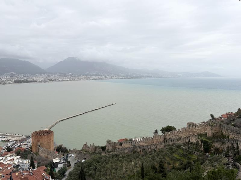 Keykubat ve Soğuk Kapı plajları ile Alanya Balıkçı Barınağı'nda deniz farklı renklere büründü.