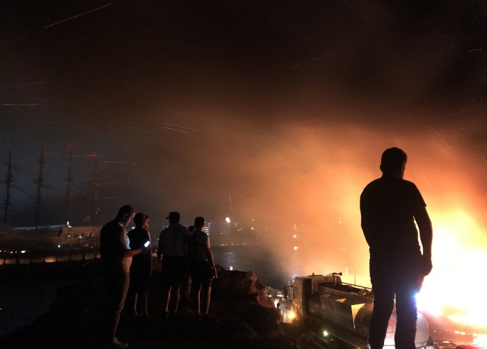 İhbar üzerine bölgeye gelen sahil güvenlik ve itfaiye ekipleri, yangını söndürmek için müdahale etti.