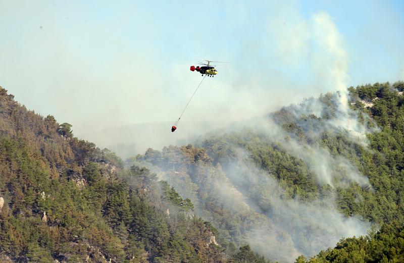 Gece boyu kara ekiplerince devam eden söndürme çalışmalarına günün ilk ışıklarıyla havadan uçak ve helikopterler de destek vermeye başladı.