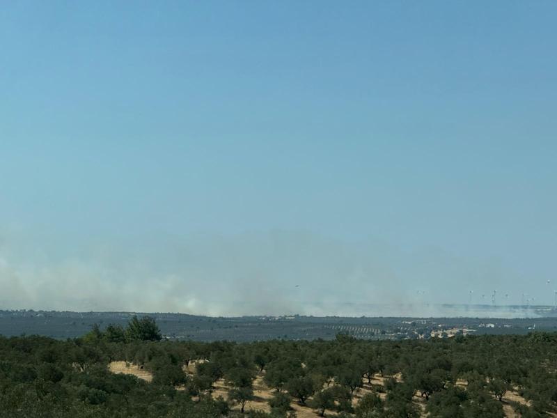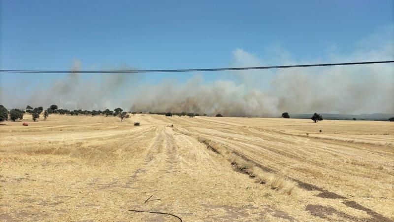 İlçeye bağlı Üvecik köyü kırsalındaki tarım arazisinde henüz bilinmeyen nedenle yangın çıktı.