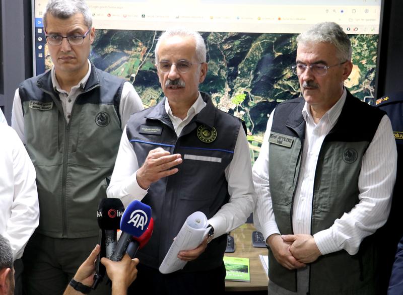 BAKAN URALOĞLU'NDAN YANGINLARA DAİR AÇIKLAMABursa Orman Bölge Müdürlüğü'ndeki koordinasyon merkezinden Bursa'daki yangınları takip eden Ulaştırma ve Altyapı Bakanı Abdulkadir Uraloğlu, "Bütün kamu ve kuruluşları sahaya gerekli müdahaleleri yapıyor. Havanın çok sıcak olması ve bazı bölgelerde rüzgarın etkisiyle de yangın yayıldı. Ancak, Orhaneli tarafındaki yangın ciddi şekilde daraltıldığı konusunda mesafe kat edildiğini söyleyebilirim. İnşallah kısa sürede arkadaşlarımızla beraber sonuç alma gayreti içerisindeyiz. Kestel ve Gürsu tarafındaki yangının 110 hektar civarında bir alanda etkili olduğunu kabaca tespit ettik. Elbette net rakamlar yangından sonra açıklanacaktır. Hava kararana kadar 13 tane hava aracımızın etkin bir şekilde müdahale etti. Ancak hava karardıktan sonra hava araçlarıyla bir müdahale söz konusu olmuyor" dedi.