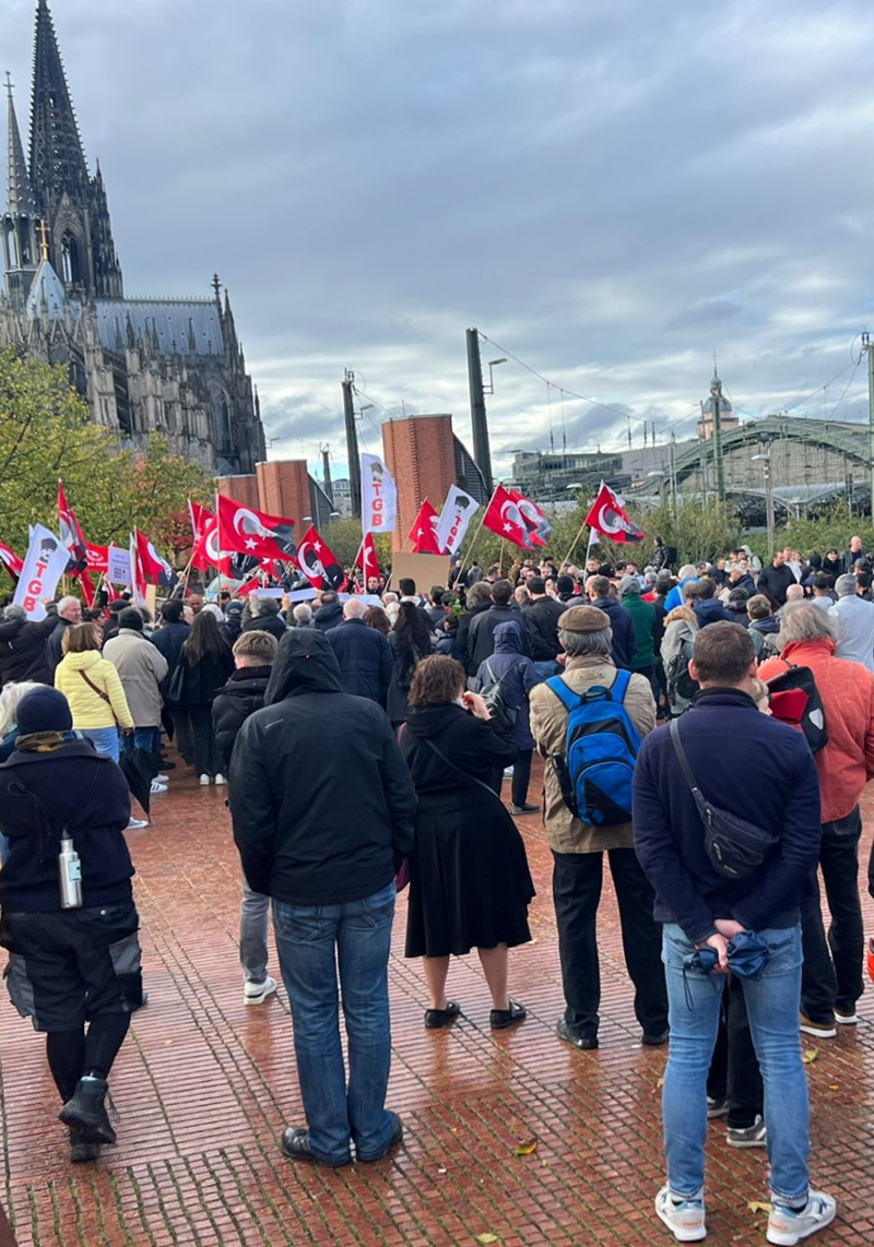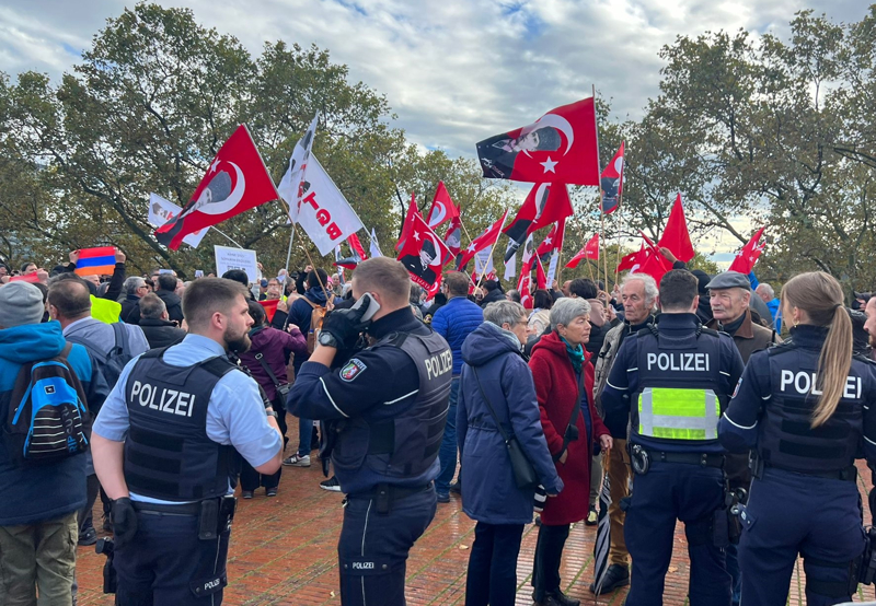 Vatan Partisi Almanya Temsilciliği öncülüğünde düzenlenen ve Türk derneklerinin desteklediği gösteride konuşan organizatörlerden Ali Aker, yasa dışı anıtın kaldırılmasını istediklerini belirterek kaldırılmazsa tepkilerinin artarak devam edeceğini söyledi.