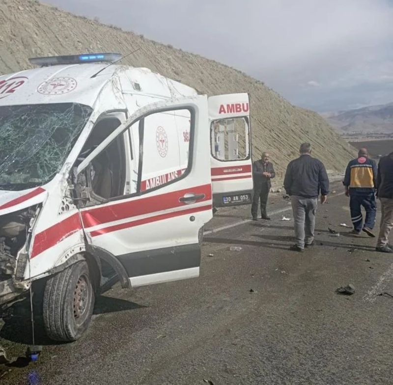 Hakkari İl Sağlık Müdürlüğüne ait evde bakım ambulansının Van-Hakkari kara yolunda yoldan çıkması sonucu 4 kişi yaralandı.