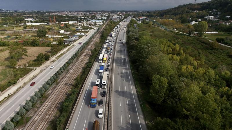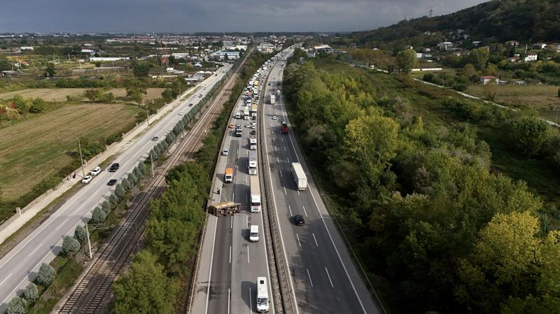 Kaza nedeniyle bölgede uzun araç kuyruğu oluştu.