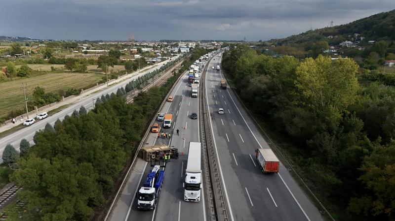 Otoyolun İstanbul istikameti Arifiye mevkisinde N.Ö. (56) idaresindeki 06 BK 3170 plakalı kamyonet, sürücüsünün direksiyon hakimiyetini kaybetmesi sonucu devrildi.