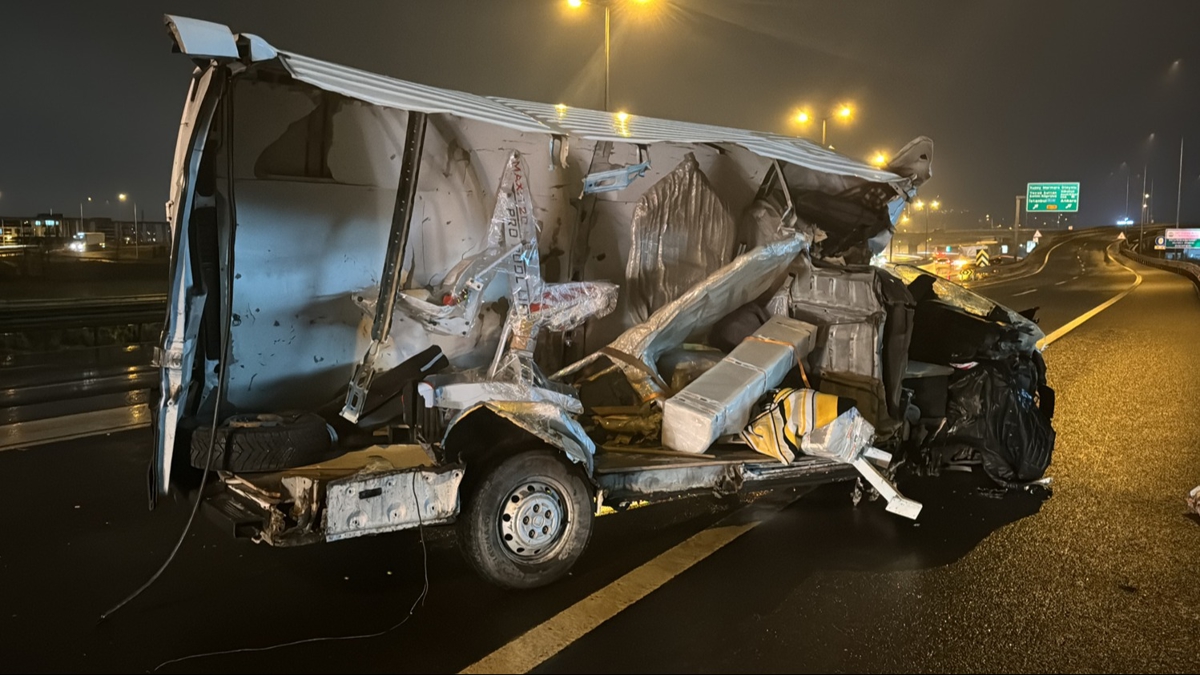 Çarpmanın etkisiyle bir bölümü tırın dorsesinde kalan panelvan, savrularak aynı yönde seyreden G.D'nin kullandığı 17 AFC 031 plakalı tırla çarpıştı.