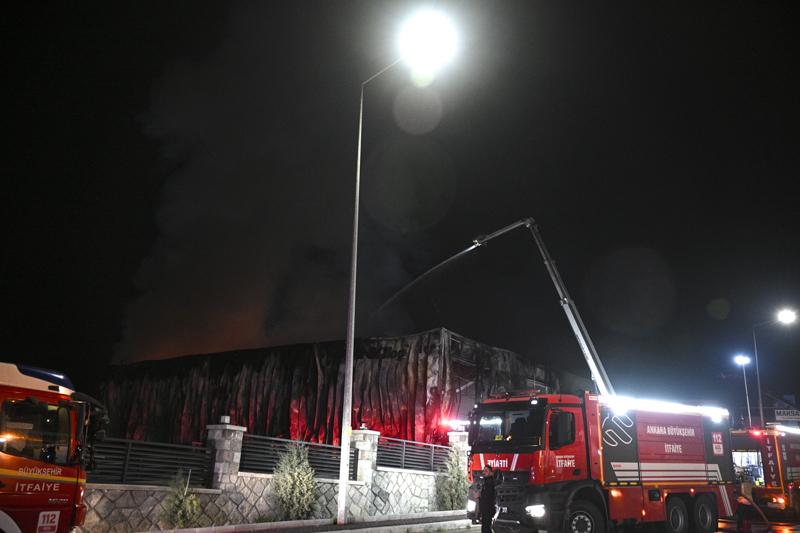 Ankara'nın Sincan ilçesindeki ilaç fabrikasında çıkan yangına itfaiye ekipleri müdahalede bulunuyor.