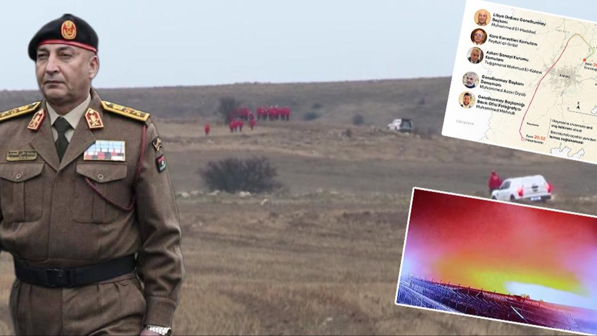 Libya Genelkurmay Başkanı Orgeneral Muhammed Ali Al-Haddad ve beraberindeki 4 kişi ile 3 mürettebatı taşıyan özel jetin enkazında arama tarama faaliyeti sabahın ilk ışıklarıyla yoğunlaştı.