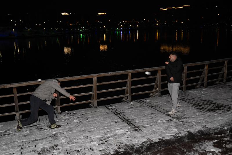 Eryaman'daki Göksu Parkı'nda ise vatandaşlar gece saatlerinde kartopu oynadı.