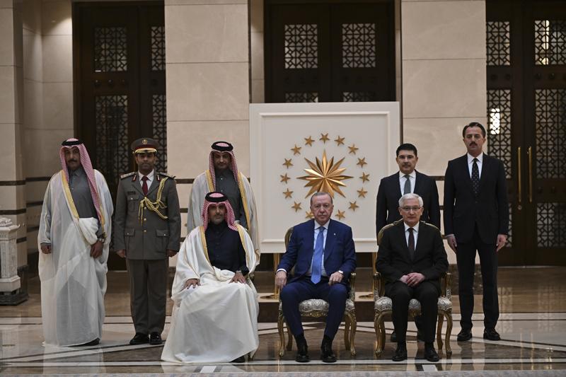 Cumhurbaşkanlığı Külliyesi'ndeki kabulde, İtalya Büyükelçisi Giuseppe Manzo, Arjantin Büyükelçisi Pablo Jose Rodriguez Brizuela ve Katar Büyükelçisi Faisal Abdullah H. A. Al-Hanzab, Cumhurbaşkanı Erdoğan'a güven mektuplarını sundu.