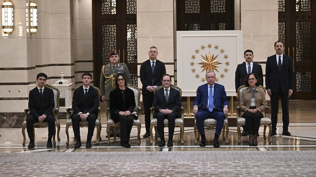 Büyükelçilik mensupları ve aile fertlerini takdim eden büyükelçiler, Erdoğan ile hatıra fotoğrafı çektirdi.