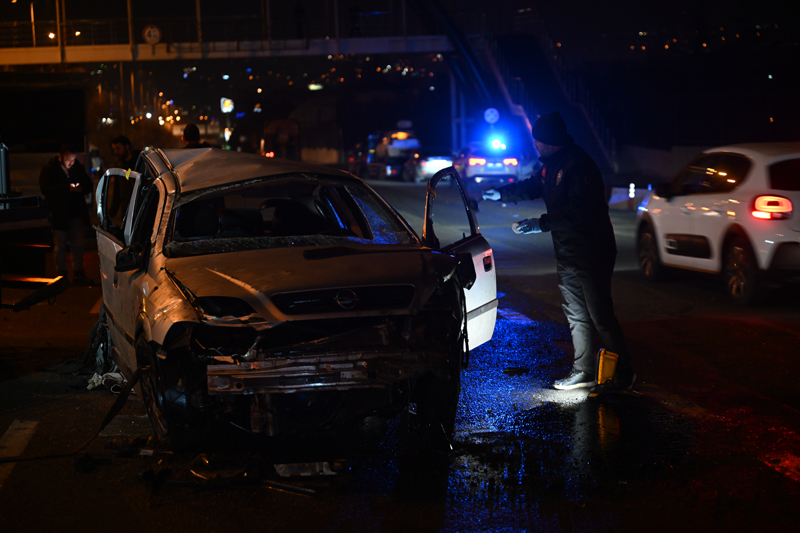Çarpmanın şiddetiyle yolun karşı tarafına devrilen otomobildeki Berat Y. hayatını kaybetti, 2 kişi yaralandı.