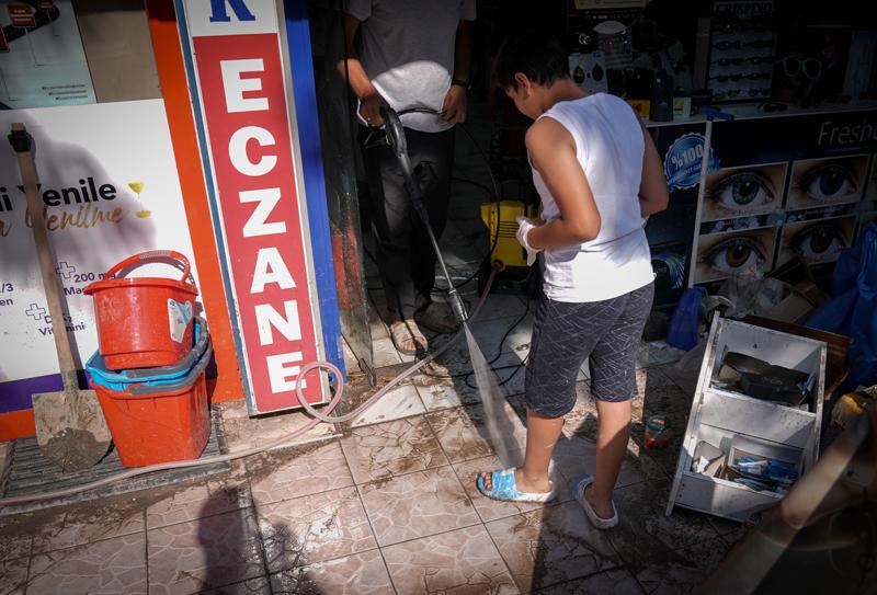 Günün ağarmasıyla vatandaşlar kendi imkanlarıyla dükkanlarını ve evlerini temizlerken, cadde ve sokaklarda vidanjörlerle suyun tahliyesi yapıldı.