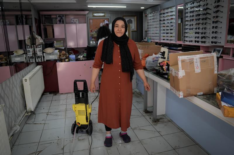 Yağış sırasında iş yerine dolan suyu tahliye etmeye çalıştıklarını anlatan Tohumcu, "Dün gece yaşananlar çok kötüydü. Biz fırçalarla yağmur suyunu tahliye etmeye çalıştık, ama su seviyesi bir anda yükseldi. Sürüklenen araba ve konteynerler nedeniyle su bu tarafa geldi. Dükkanı kurtaralım derken canımızdan oluyorduk." ifadesini kullandı.