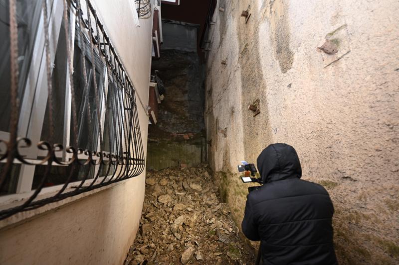 Akdere Mahallesi'ndeki bir gecekondunun istinat duvarında 2 Şubat'ta meydana gelen kısmi çökme nedeniyle bitişiğindeki İpek Apartmanı'nın sakinleri, olay yerine gelen belediye ekiplerinin gözetiminde binayı tedbiren tahliye etti.