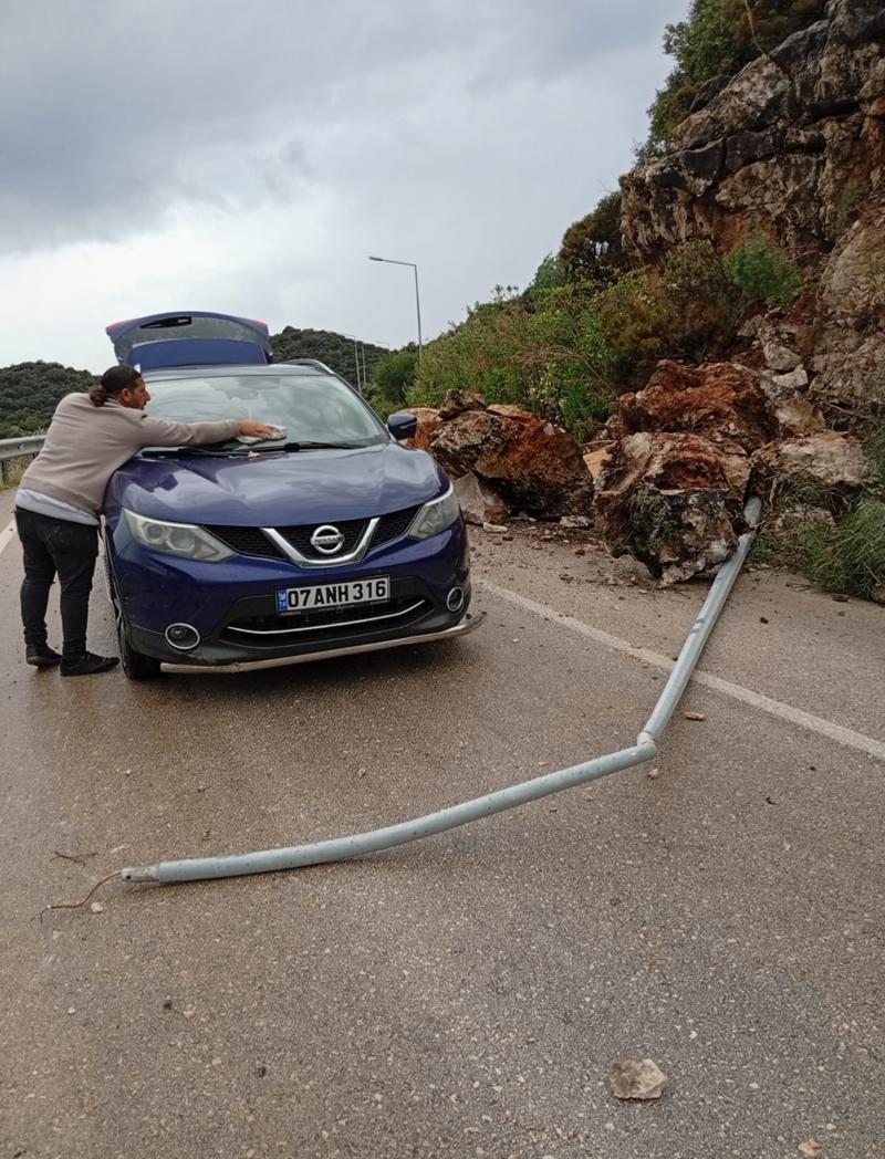 Kaş ilçesi Yarımada mevkisinde meydana gelen heyelanda seyir halindeki bir araç zarar gördü.