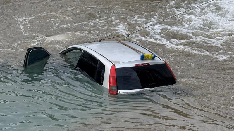 Suya batan otomobilin içindeki 3 kişi yüzerek kıyıya çıktı.