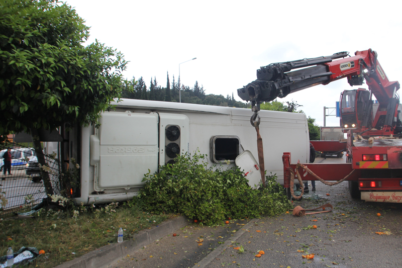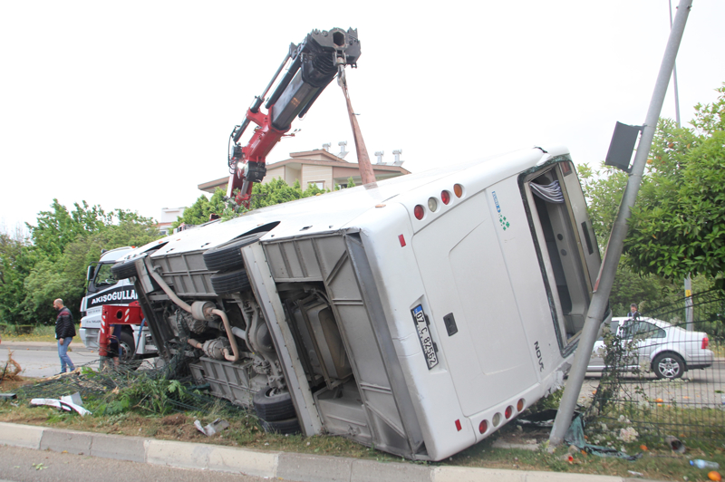 Orta mahalle D-400 Karayolu Gedik kavşağı yakınlarında, Osman Ali Kaplan idaresindeki 07 C 82562 plakalı otel servis midibüsü devrildi.