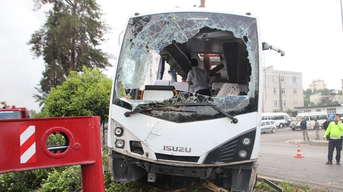 Yaklaşık 20 metre sürüklenen midibüs, refüjde bulunan bariyer, direk ve ağaçlara çarparak durdu.