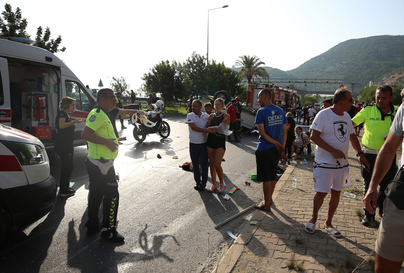 Hacımehmetli Mahallesi'nde 06 CME 531 plakalı beton mikseri, 07 NYF 35 plakalı pikaba çarptı. Savrulan pikabın çarptığı 07 HHD 79 plakalı safari cipi de devrildi.