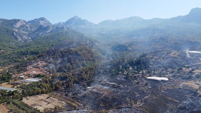 Antalya Valisi Hulusi Şahin, gazetecilere, yıkılan elektrik direğinden çıktığı düşünülen yangının, kısmen kontrol altına alındığını belirtmişti.