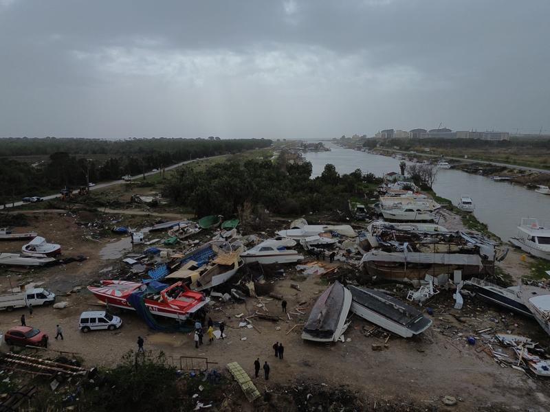 Görüntülerde, çok sayıda farklı boylardaki teknede hasar oluştuğu görüldü. Teknelerden bazılarının parçalandığı, bazılarının ters döndüğü, bazılarının da devrildiği dikkati çekti.