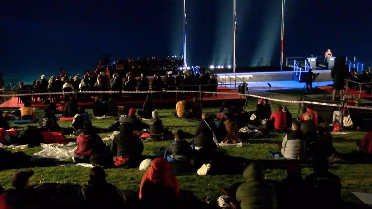 Katılımcılar, uyku tulumları ve battaniyeler içinde, tören alanına kurulan dev ekrandan Çanakkale Savaşları'na ilişkin belgesel, film, röportaj ve bazı kentlerdeki Anzak Günü törenlerini izleyerek "Şafak Ayini"nin başlamasını bekledi.