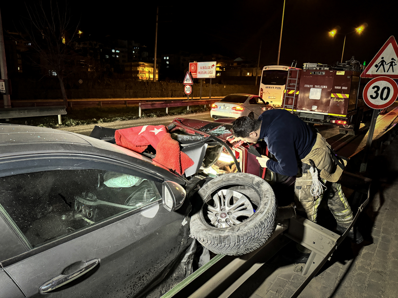 Kazanın şiddetiyle İbrahim Ü'nün kullandığı otomobil, çarptığı aracı bir süre sürükledi.