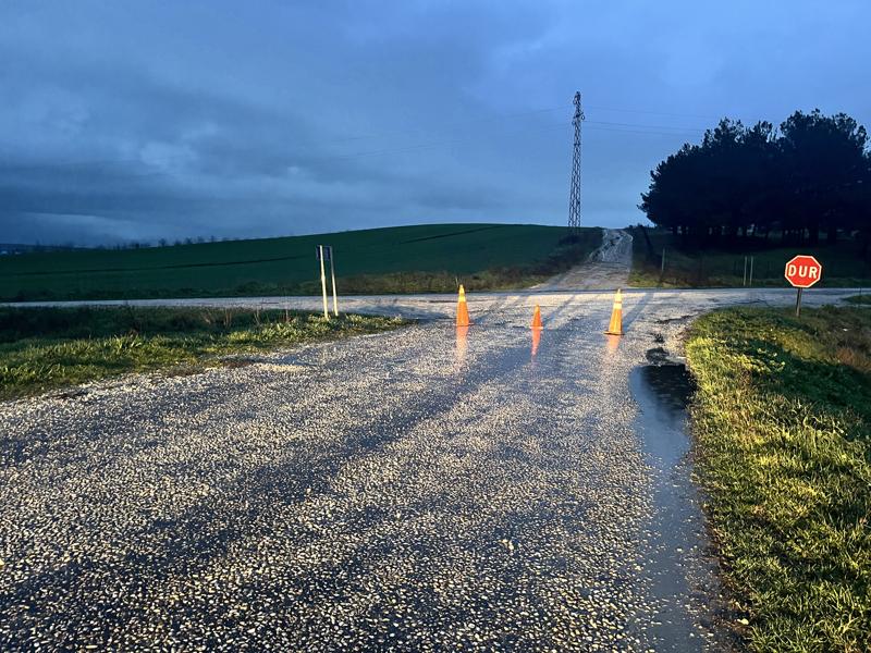 Demirhanlı ile Köşençiftliği köylerini birbirine bağlayan yol, tedbir amacıyla ulaşıma kapatıldı.