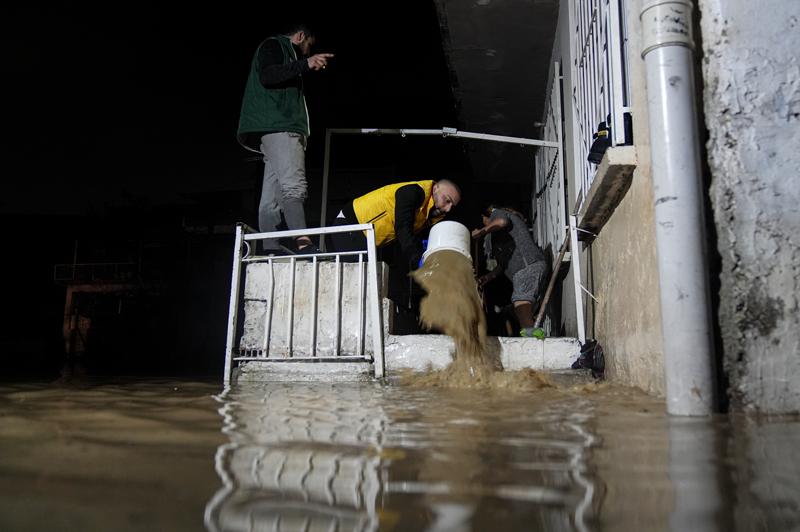 Buca ve Bornova ilçelerinde sağanak nedeniyle dereler taştı, cadde ve sokaklar göle döndü. Mahalle sakinleri evlerine basan suyu kendi imkanlarıyla dışarı çıkarmaya çalıştı.