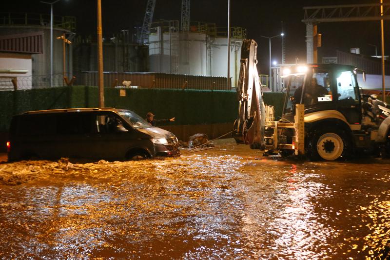 Otogar girişindeki alt geçitte biriken su nedeniyle mahsur kalan araçlar, çekici yardımıyla kurtarıldı.