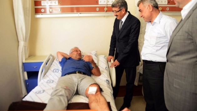Olaya müdahale ettiği sırada bacağından yaralanan polis memuru M.Ç.E. ve diğer yaralıları ziyaret ederek geçmiş olsun dileklerinde bulunan Vali Bilmez, yaralıların durumu hakkında yetkililerden bilgi aldı.