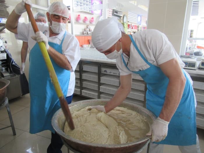 Tarihi işletmenin dördüncü kuşak temsilcisi Ömer Ayhopa, gazetecilere yaptığı açıklamada, yaklaşık bir asırdır kürek helva ürettiklerini söyledi.