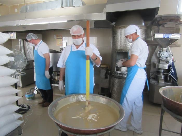Helva yapımını babasından öğrendiğini dile getiren Ayhopa, "Helvamızı, geleneksel yöntemlerle üretiyoruz. Kaynama işleminin ardından helvayı bakır kazanlara aktararak, kürekle karıştırıyoruz. Elle yoğurma işleminin ardından da paketleme işlemi yaparak iftar sofralarına hazırlıyoruz." dedi.