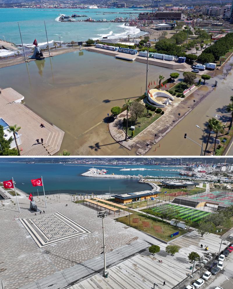 Depremin ardından görüntülenen sahil, üç yıl sonra aynı açılardan tekrar dronla kayda alındı.