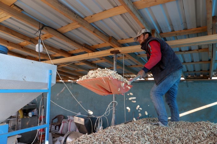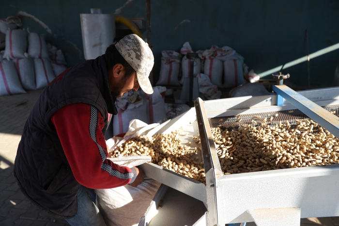 Mayıs ayı ortasında kumlu araziye ekimi yapılan yer fıstığı, 150 günlük yetişme süresinin ardından makineyle ya da elle topraktan çıkarılıyor. Çıkarıldığı yerde 4-5 gün kurumaya bırakılan fıstık, dövülerek bitkiden ayrılıyor. Serilerek kurutulan fıstık, elenerek çuvallanıyor. Bölgede bir dönüm araziden 200 ile 400 kilogram arasında ürün alınıyor.